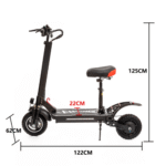 The lightweight yet robust steel frame houses polished shocks and oversized 10-inch knobby tyres for exceptional handling on any terrain. Customise your ride with adjustable shocks and disc brakes, ensuring comfort and safety. Whether you’re navigating city streets or exploring rugged trails, this scooter is your ticket to ultimate freedom.