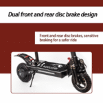 • Dual braking system: Electronic and disc brakes provide reliable stopping power.