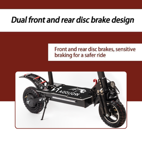 - Dual braking system with electronic and disc brakes