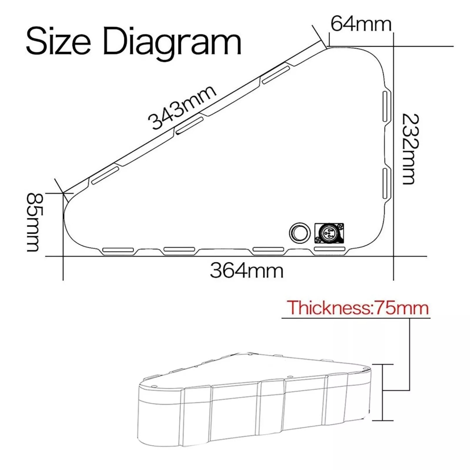 36V Triangle Lithium Ion Ebike Battery & Charger Set – 15Ah from TDR delivers enhanced performance and reliability for your electric bike. Featuring Grade A cells, BMS protection, and a waterproof hard case, this high-capacity battery ensures long-lasting power, fast charging, and compatibility with most 36V ebike kits (excluding Bosch, Shimano, Yamaha, Panasonic). Equipped with an intuitive charge level indicator and USB port, it provides seamless riding and convenience.