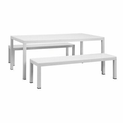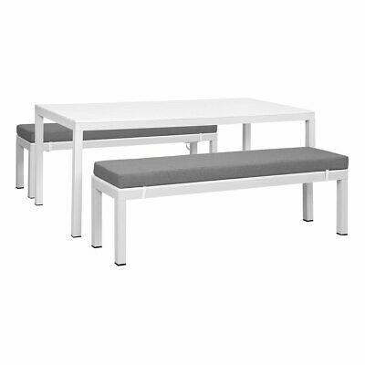 NEW 3pc White Garden Lounge Aluminium Outdoor Bench Dining Set