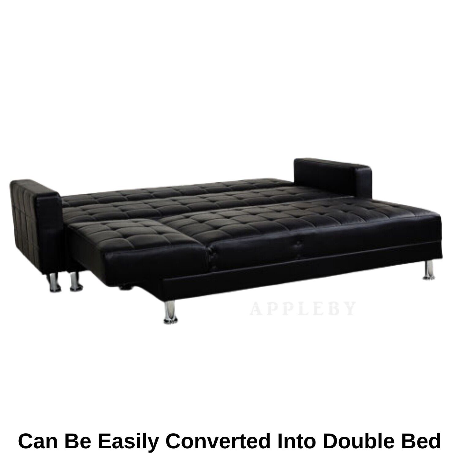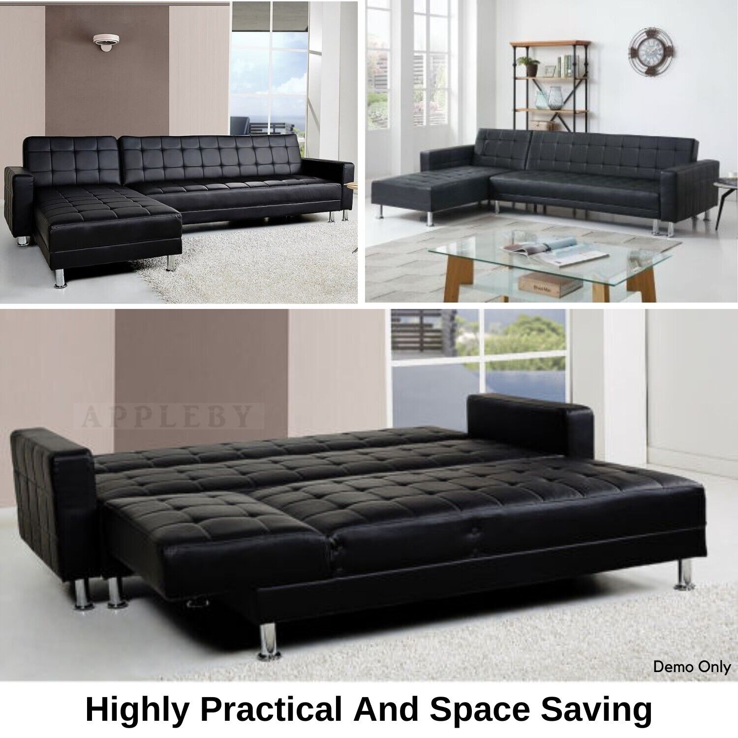 Package Inclusions: 1 x 5 Seater Convertible Sofa Bed Faux Leather Sleeper Couch Chaise Lounge Black