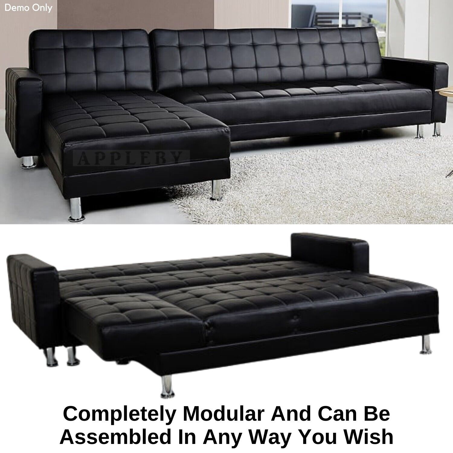 5 Seater Convertible Sofa Bed Faux Leather Sleeper Couch Chaise Lounge Black