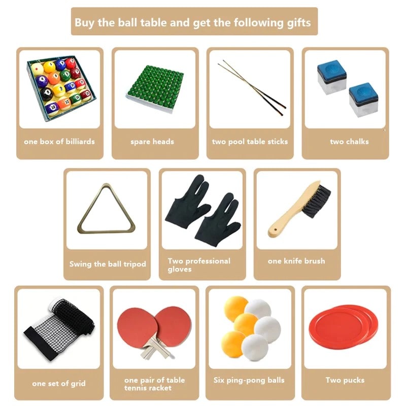 • 4-in-1 Functionality: Effortlessly switch between billiards, air hockey, table tennis, and dining for versatile entertainment.