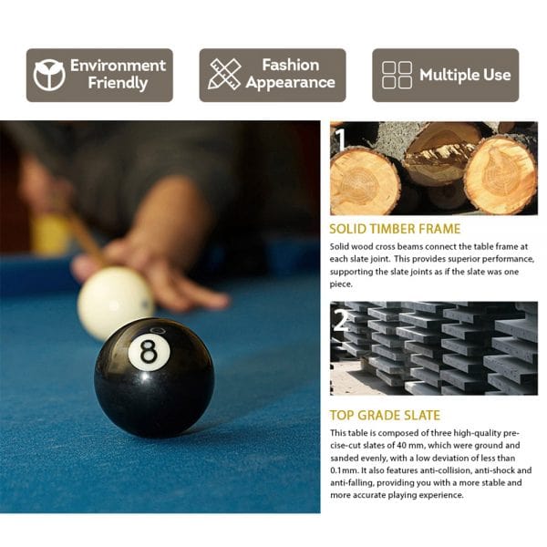 8FT Pool Table Manhattan Slate With Dining Top
