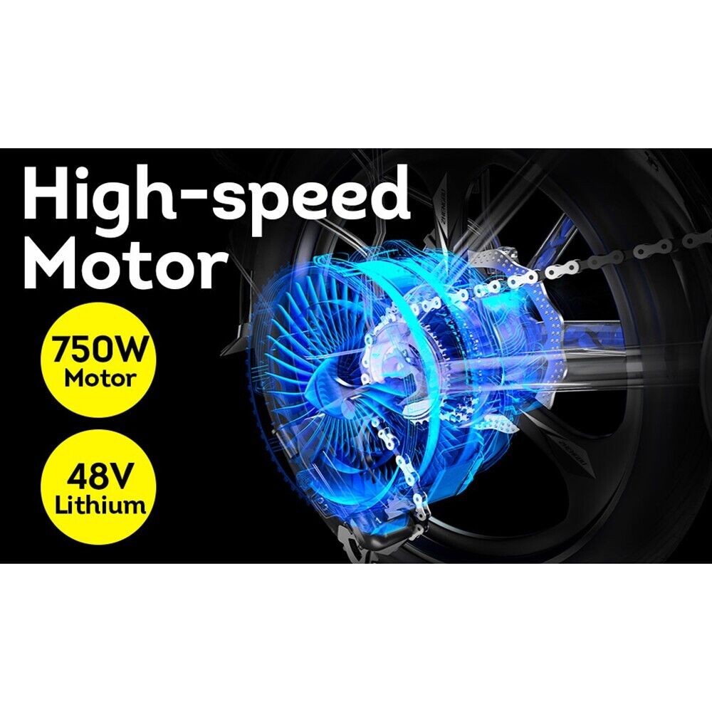 - *Powerful 750Watt Rear Motor: it provides great energy, increasing max speed up to 60km/h. (This is test data coming from the highest speed riding on a flat road by a rider of 60kg.)