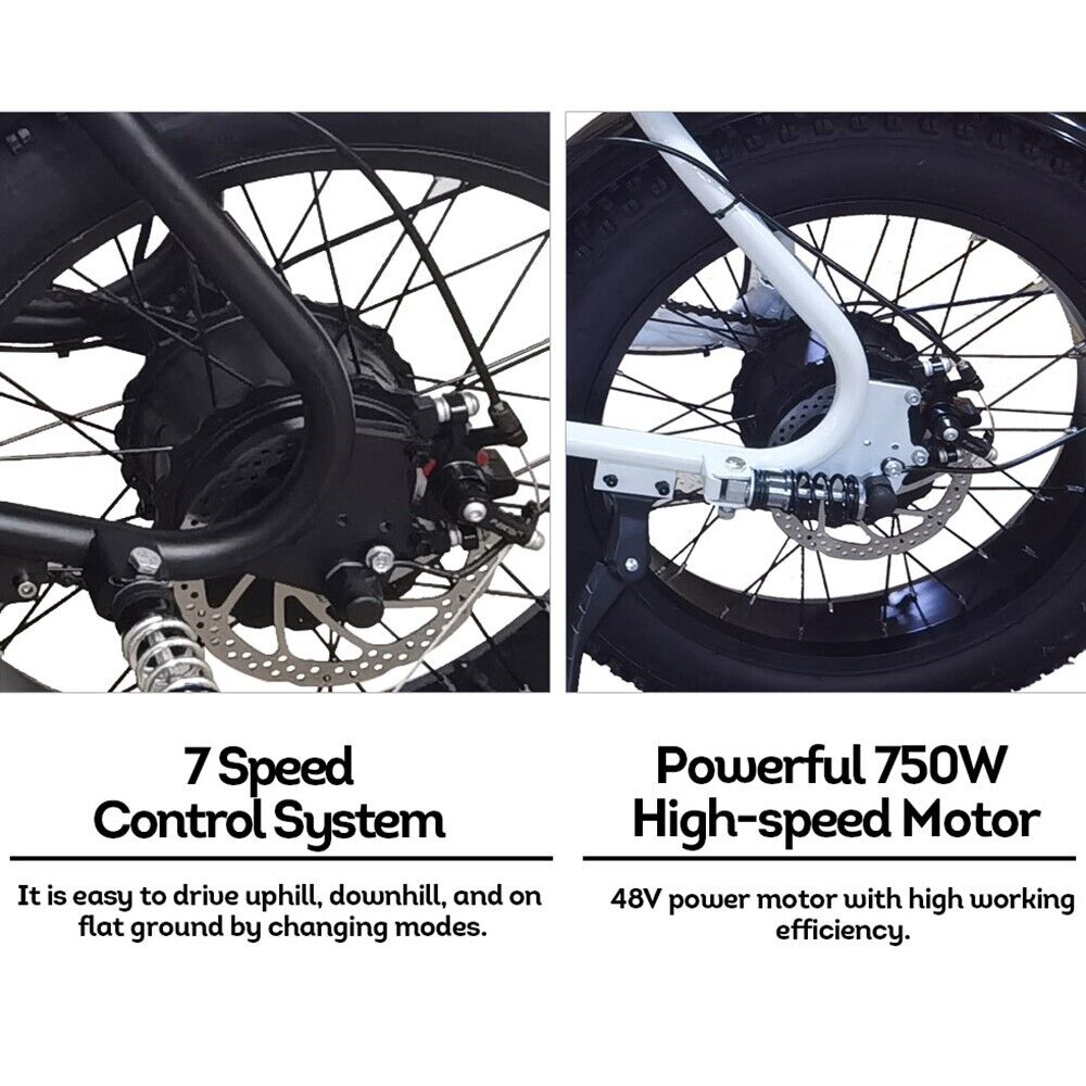 AKEZ 750W 48V R1ZCC Snow Bicycle 20″ Electric Bike Battery White