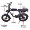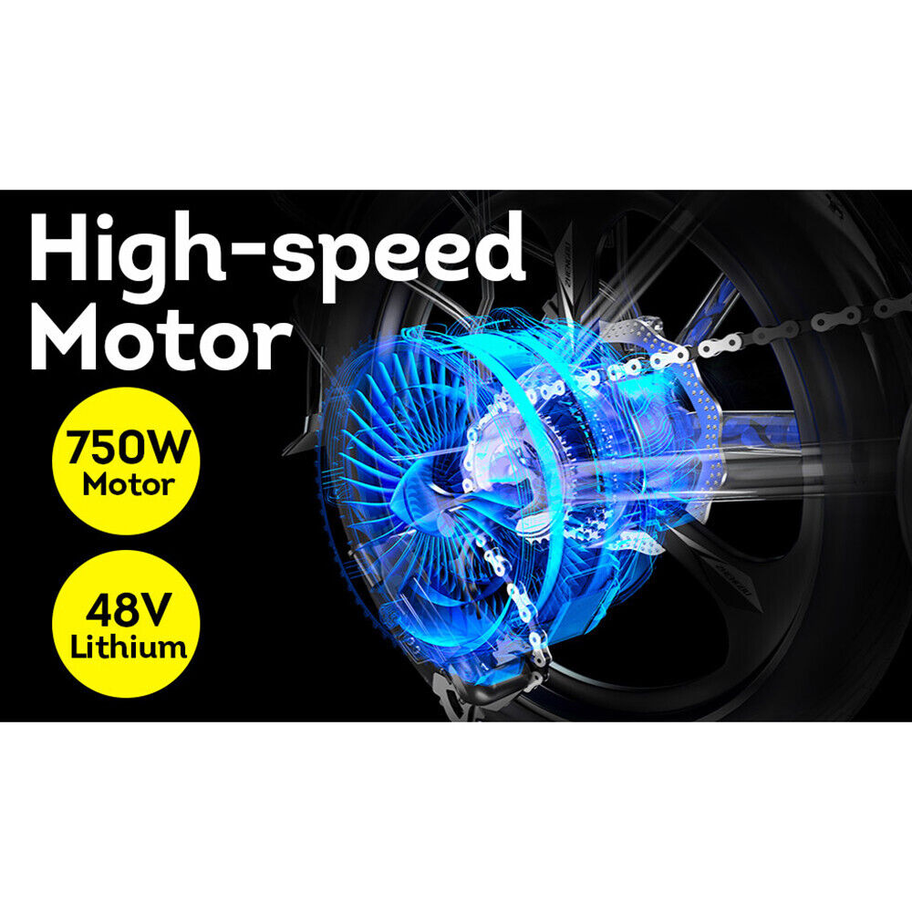 AKEZ 750W 48V R1ZCC Snow Bicycle 20″ Electric Bike eBike Battery Black