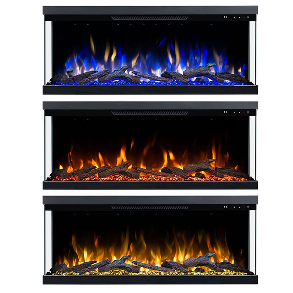 • Modern 3-sided glass design with tall 51.5 cm viewing window for immersive flames