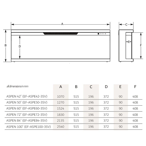 Upgrade your home with the Aspen 3-sided electric fireplace – combining modern design, smart functionality, and year-round warmth in 50″, 60″, 72″, and 84″ sizes for ultimate luxury.