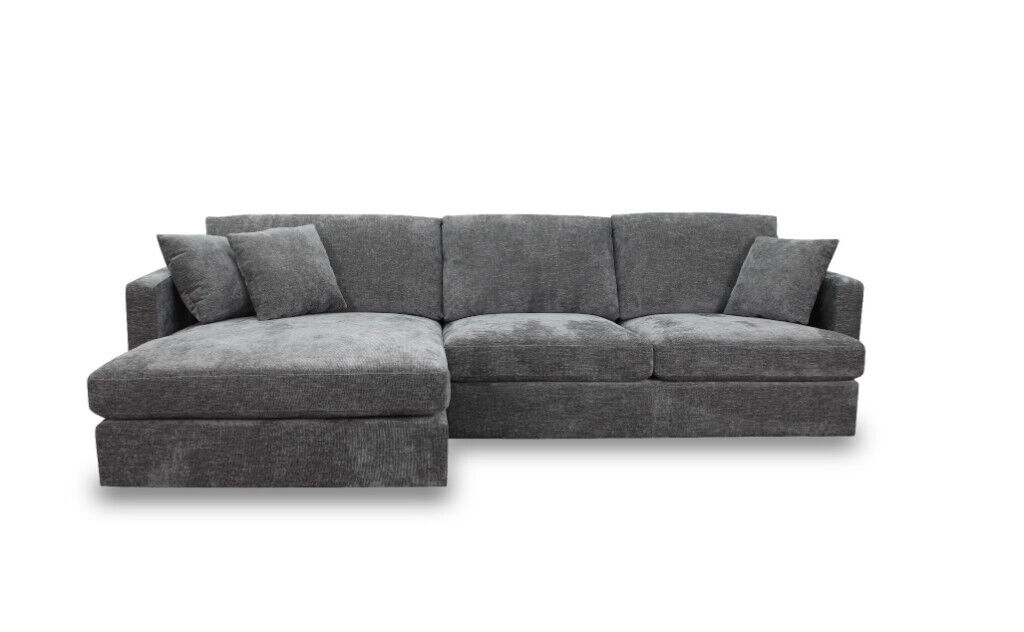 - Modern Design: Features a sleek arm design and loose seat and back cushions, available with LHF or RHF chaise in licorice or slate.