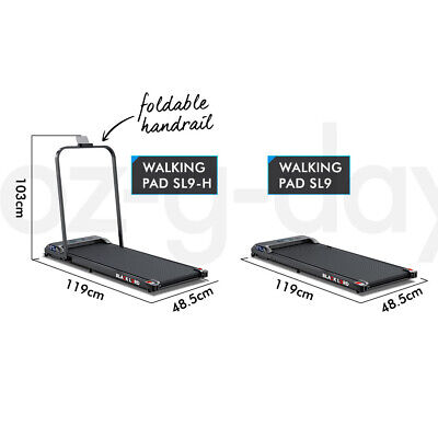 Model SL9 / SL9-H* 2.2HP powerful and energy-efficient ÖkoDriveTM motor * Sturdy powder-coated steel frame* Wireless remote control: on/off, speed control* Diamond texture anti-slip and wear-resistant running belt* Shock absorption* Digital LED display – speed, distance, time, and calories* Bluetooth APP control function * Built-in Bluetooth speaker* Practical tablet/ phone holder (for Model SL9-H only) * Foldable & removable handrails design – easy storage (for Model SL9-H only)* Bonus: fitness smart watch* Smooth wheels for mobility