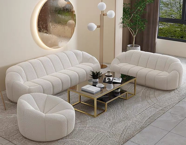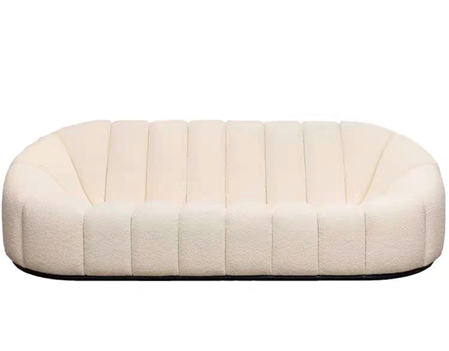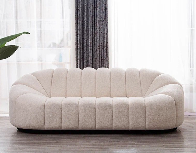 Make a statement in your living or study room with the Boucle Upholstery Velvet Arm Lounge Zucca Sofa Ivory White Couch 3-Seater. This exquisite piece features soft cushions with gentle curves that provide both comfort and aesthetic appeal. The elegant design complements any decor, bringing a touch of sophistication to your space.