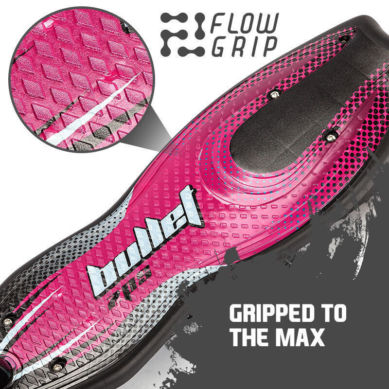 The Bullet ZPS electric scooter boasts striking pink decals on the FlowGripTM deck which offers plenty of control for safe riding. Thanks to the 140 watt motor it can zip along at speeds of up to 15km/h, which is fast enough for maximum fun, without causing chaos in the local park.