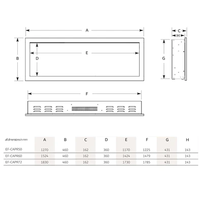 - Designed with front flow heating with hidden venting, The venting is located at the top of the unit allowing heat to cascade down in front of the glass.