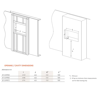 - Cavity Size – 148.6cm(Width) x 15.2cm(Depth) x 43.2cm(Height);