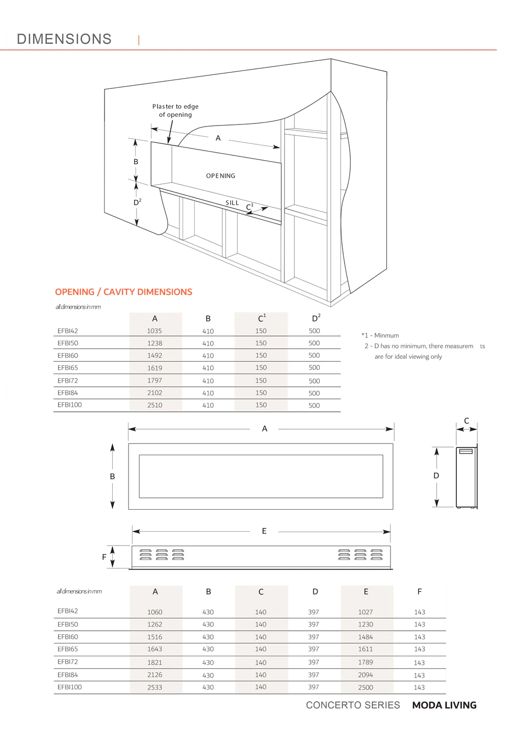 • Fireplace Suite Dimensions (167.9W x 25D x 59.4H cm)