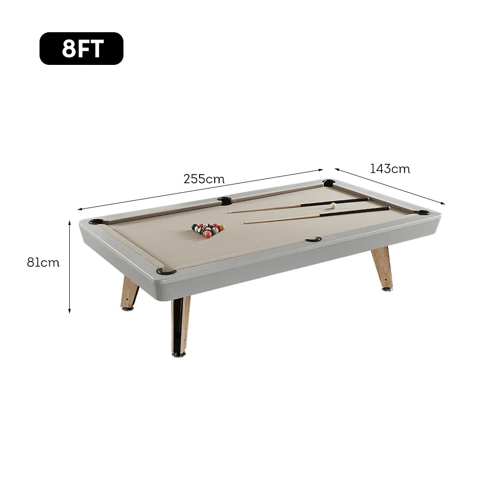 The CUETIQ L006 3-in-1 slate billiard table converts effortlessly into a ping-pong table or office desk, featuring a solid oak and grey wood frame for professional-grade play in Australian homes.