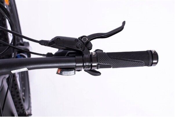 A pro grade E-MTB at an amazing value! The Estate E-MTB has up to date geometry in its aluminium frame to get you into the mountains and up to whatever trails your skill level enables. Powerful hydraulic brakes, 29” wheels with Maxxis tyres, and the hydraulic damped Suntour suspension fork won’t hold you back no matter what terrain you tackle. The dropper post drops the seat down out of the way for when the trails turn downward and steep! Wide aluminium handle bars with a short stem keep you in control. When the trail turns upward, the powerful mid mount 250W motor with 80nm of torque makes climbing the toughest trails possible. Take your riding to the next level with the Estate E-MTB!
