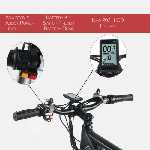 2022 Model Updates – Upgraded Battery from 36V to 48V, New LCD Panel, New Assist Power Level Adjustment from Handle Bar, Front Fork Suspension Lock, Full Carbon Steel Frame, Battery Kill Switch