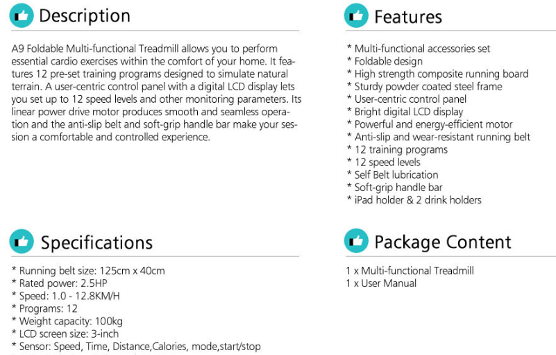 The JMQ A9 Treadmill comes equipped with 12 preset training programs that simulate various natural terrains, providing a dynamic and engaging workout experience. Whether you’re aiming to improve your endurance, burn calories, or maintain overall fitness, these programs are tailored to meet diverse training needs.
