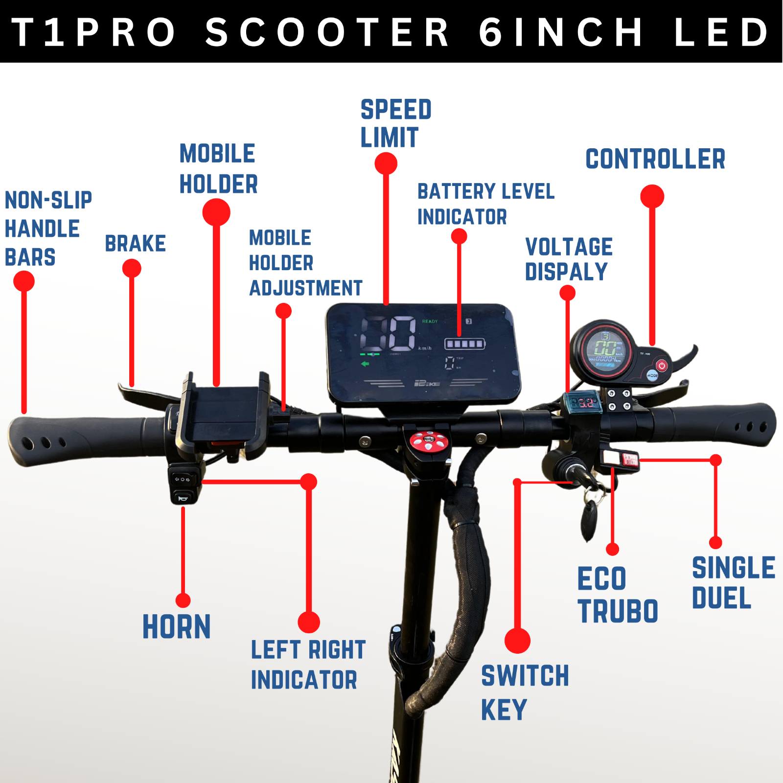 Featuring a removable battery, waterproof connectors, and fuses for added safety, the Kasa T1pro combines cutting-edge technology with robust construction. Its 6-inch LCD display keeps you informed in real time, displaying speed, battery life, and trip distance. The scooter also includes advanced features like rear shock absorbers, a mobile holder, USB port, rear indicators, and a newly designed wheel system.