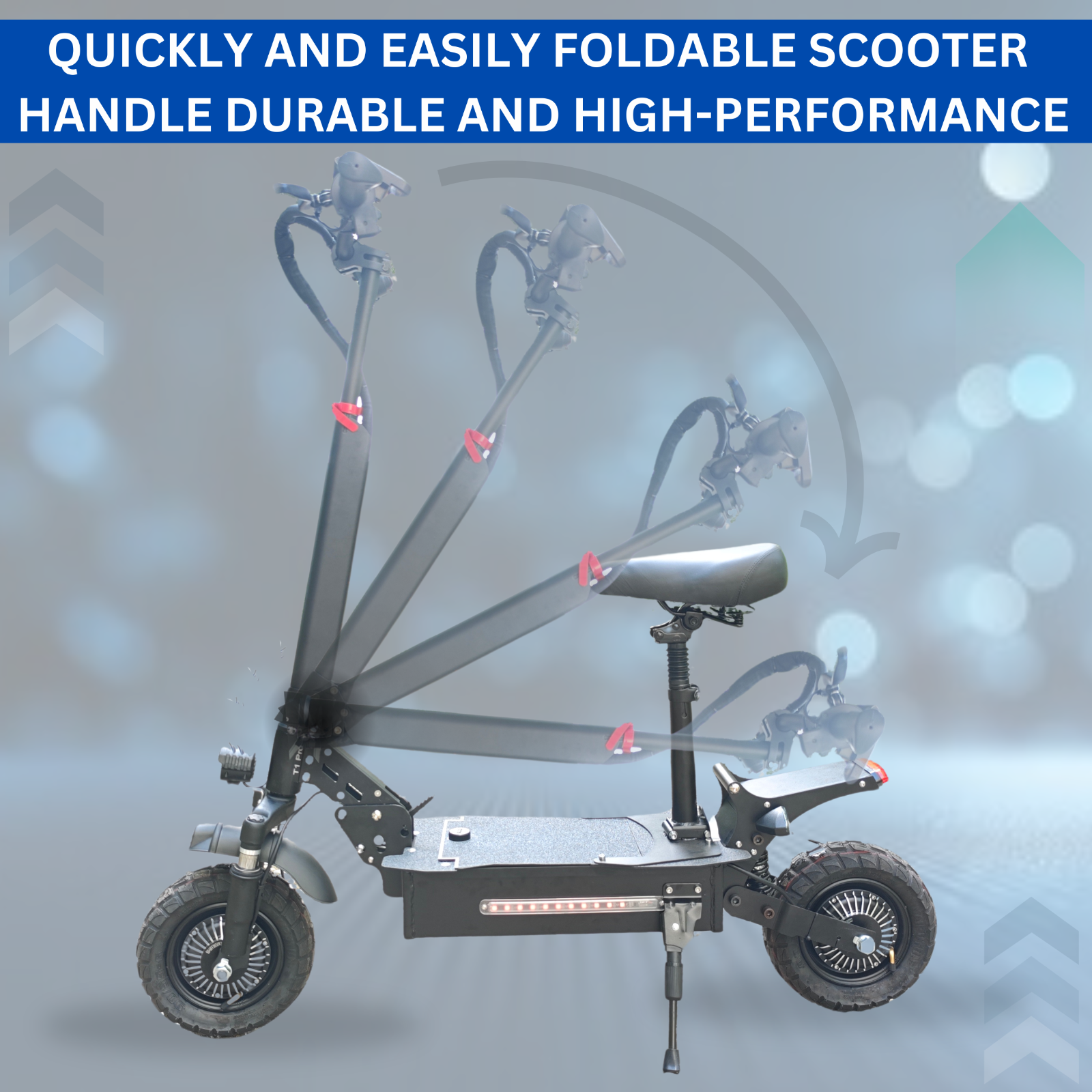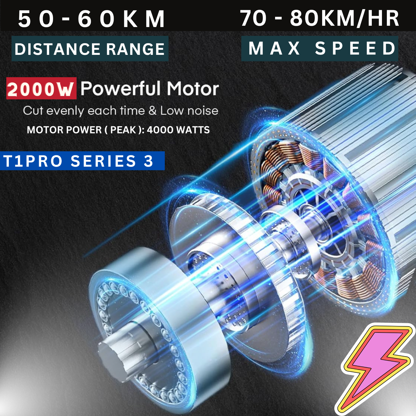 Experience unmatched power and performance with the Kasa T1pro 4000W Adult Electric Scooter. Designed for off-road enthusiasts, this high-performance scooter is equipped with 4000W peak power (3300W nominal) and dual motors, ensuring top speeds of 70-80 km/h on private property and seamless navigation across rugged terrains.