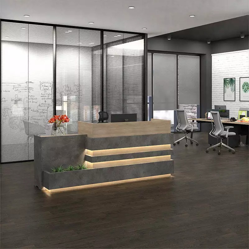 KERAN Reception Desk – Modern Acacia & Carbon Grey Office Furniture with LED Lighting
