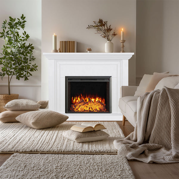 Elevate your home’s ambiance with the Kingsley 2000W Electric Fireplace Heater, complete with a stylish white mantel suite and a 30-inch Starlight insert. This modern electric fireplace offers both elegance and functionality, making it a perfect addition to any room. Featuring a lifelike 3D flame effect, adjustable brightness, and multiple flame colours, this fireplace is designed to create a cosy atmosphere all year round.