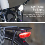 The front and rear LED lights are conveniently powered by the eBike battery. Quick release levers allow you to easily adjust the seat height. You can also adjust the handlebar and stem angle, as well as fine-tuning the handlebar height by selecting the right number of headset spacers. This ultimate commuter comes complete with mudguards, bagrack and kickstand.