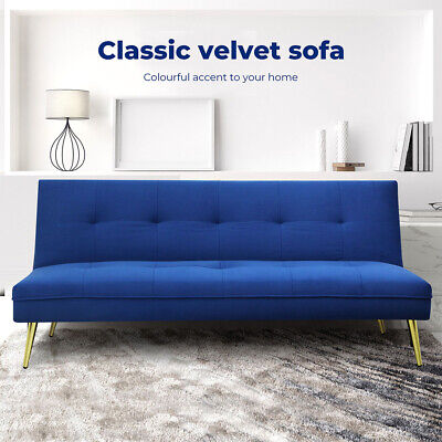 Levede 3 Seater Sofa Bed Convertible Velvet Lounge Adjustable Recliner Couch – Blue