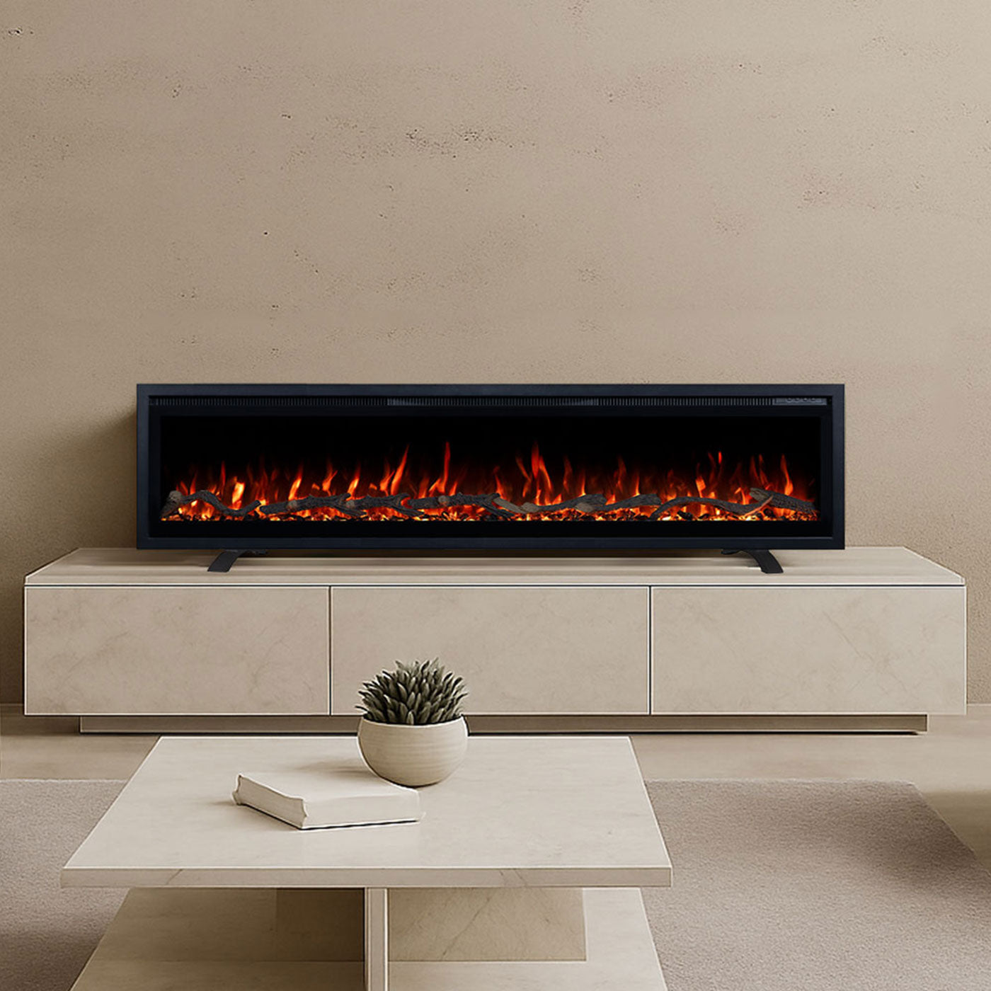 The Lucerne 60 Inch 1800W Electric Fireplace is a versatile heating solution that brings ambience, warmth and contemporary style to your home or office. Designed for flexible installation, it can be recessed into a wall, mounted on a surface, or used freestanding with the included stand—ideal for open plan living, lounges, bedrooms, and entertainment areas.