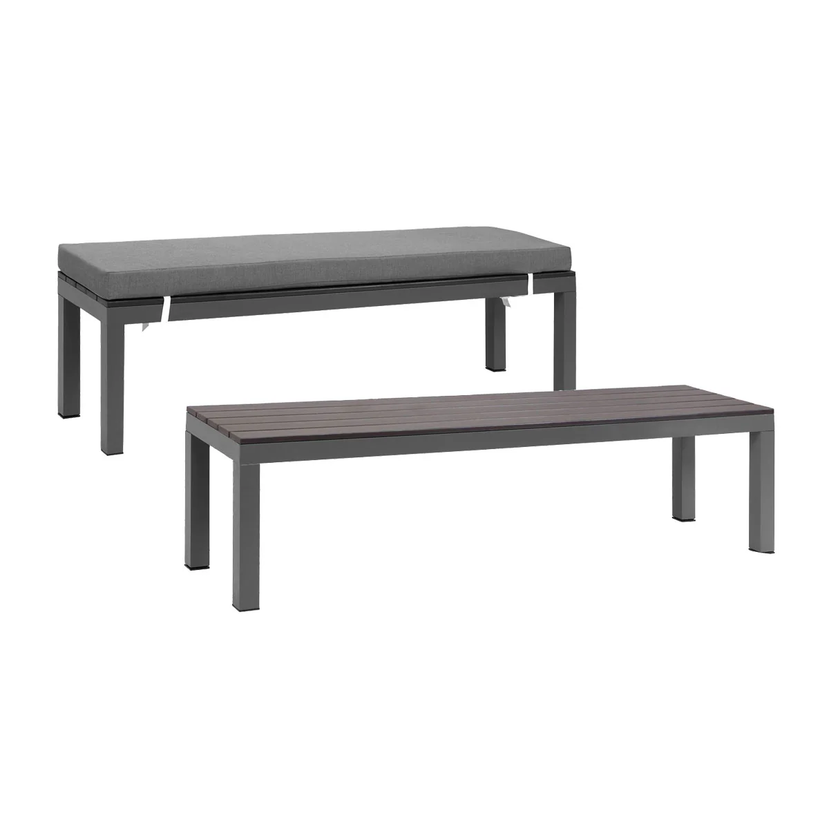 Manly Charcoal Aluminium Outdoor faux wood Top Bench with Grey Cushion (Set of Two)