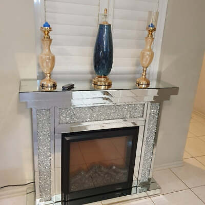 Diamond Crushed Mirrored Electric Fireplace (Glass Decorative)