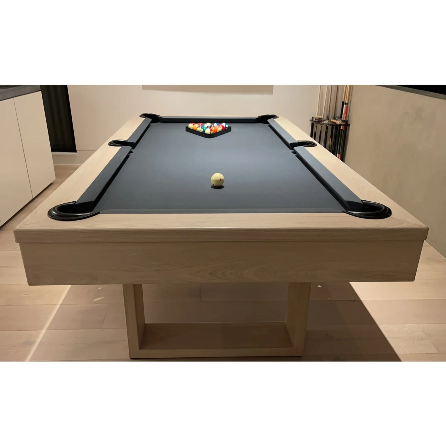 The Ocala Luxury Slate Dining Pool Table is a beautifully engineered convertible dining and pool table designed for modern homes that demand both style and performance. Custom made to order, this table seamlessly combines elegant dining functionality with a high-quality slate billiards playing experience.
