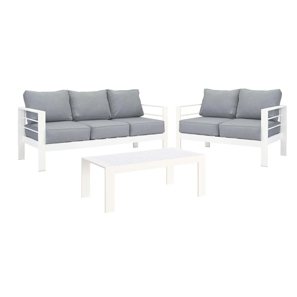 Paris 5 Seater White Aluminium Sofa Lounge Suite – Grey Cushion