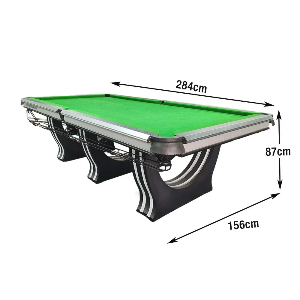 The 9FT table features a bluestone slate surface, ensuring exceptional flatness, smooth ball roll, and long-term stability. This slate guarantees consistent speed and precise rebound, ideal for both casual and competitive players.