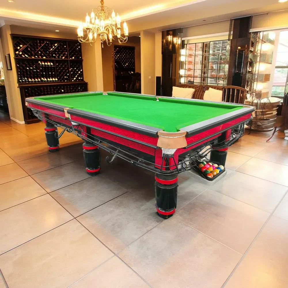 The vibrant red felt enhances visibility and adds a bold, contemporary touch while maintaining smooth, consistent gameplay suited to both pool and billiards.