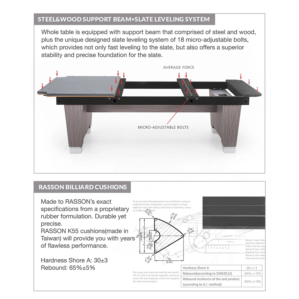 - The construction of this Rasson HERO 9FT Slate Billiard Table is durable enough for playing but not climbing or heavy load.