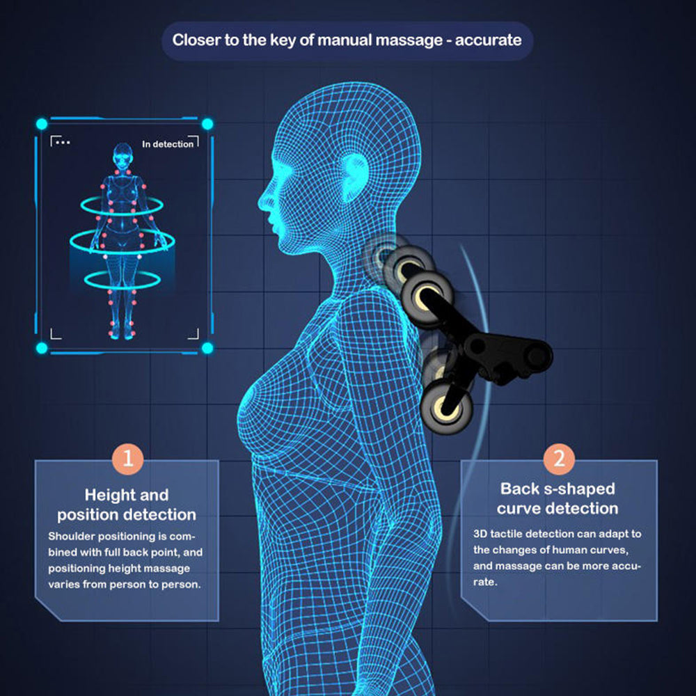 The SL‑track system follows the natural curve of your spine from neck to lower back, offering uninterrupted massage coverage that reaches deeper muscle layers. This extended track delivers more thorough tension relief and better alignment than traditional massage rails.