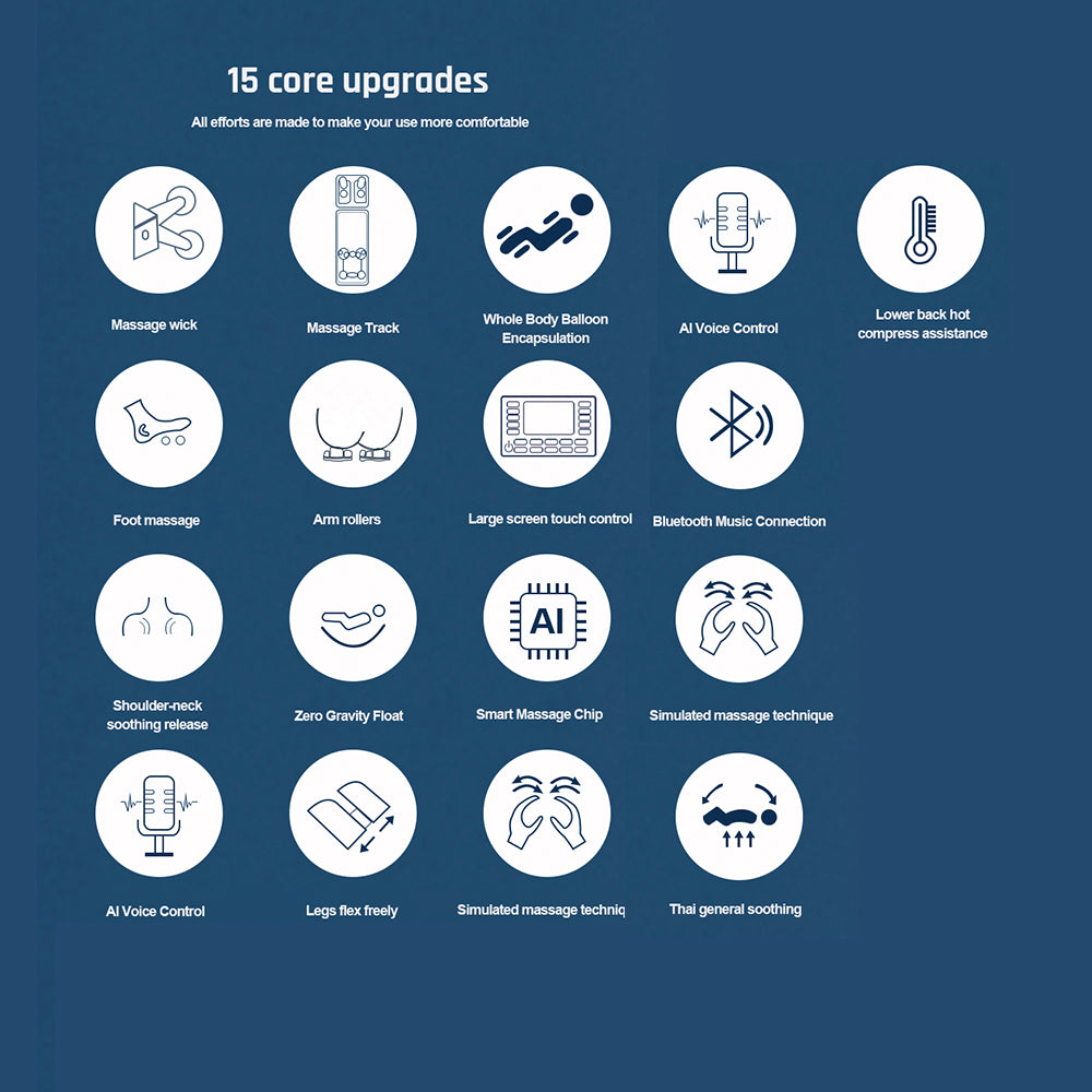 Designed with plush padding and ergonomic contours, this chair supports your body through every session. The well‑balanced cushioning and supportive structure ensure comfort during prolonged use, making it ideal for relaxation, recovery and daily wellness routines.