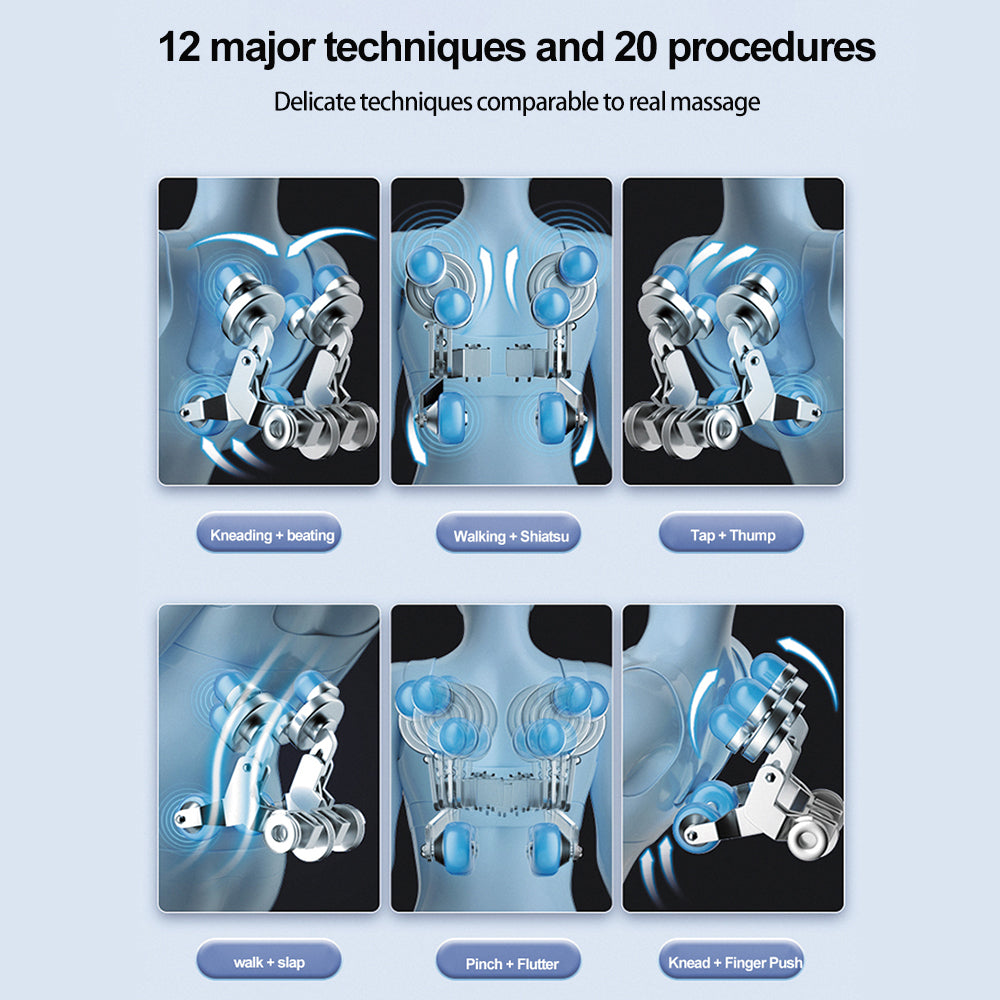 The SL track follows the natural curve of your spine—from neck down to the lower back and glutes—providing extended massage coverage that reaches deeper muscles and offers smoother, more continuous pressure than traditional vertical track systems. This technology delivers a more natural, human‑like massage sensation.