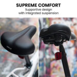 Clocking up the kilometres on a Shuttle 5 electric bike is a pleasure with the supportive saddle which boasts integrated suspension, and soft grip rubber handles.