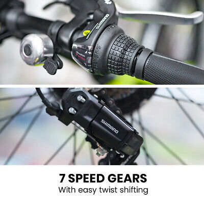 The Shuttle 5 is equipped with a Shimano Tourney cassette and derailleur, and with the Shimano’s RevoShift twist grip shift system smooth gear changes are easier than ever.