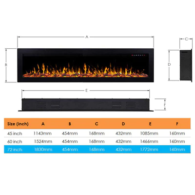 Sonata 1500W 72 inch Built-in Recessed Electric Fireplace