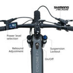 This electric bike conquers trails with ease, the Cyclone 7+ electric mountain bike combines a balanced 6061 Alloy frame with Suntour’s capable XCM30 front forks and Kenda Kadre tyres to ensure agility through twists and turns, delivering ultimate control.