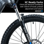 - Front Suspension: Suntour XCM30 (Adjustable w/ Lock out)