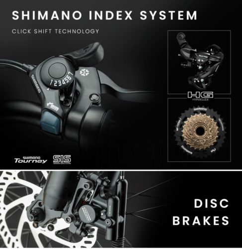- Gears: Shimano SIS-Index 7-speed