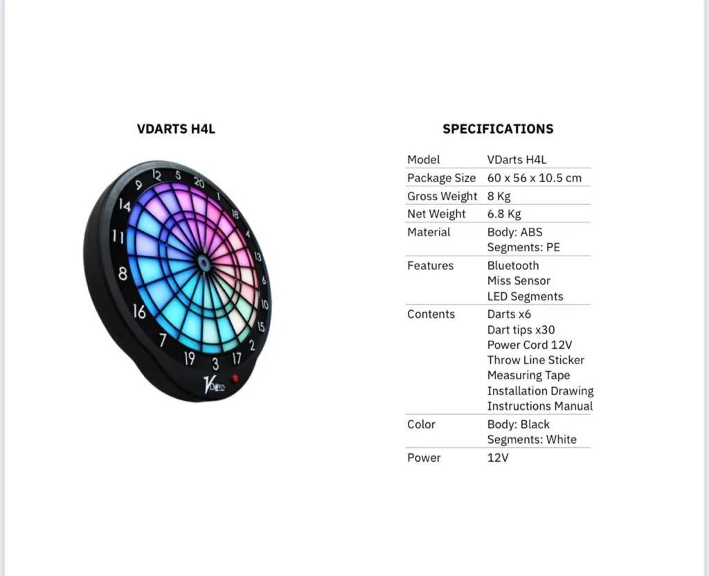 The VDarts H4L Premium Electronic Darts Dartboard is designed for both serious players and casual enthusiasts looking for high-quality performance and fun. Built with advanced technology and durable materials, this dartboard provides an exceptional playing experience that caters to players of all skill levels. Whether you’re hosting a tournament or enjoying a game with friends, the H4L dartboard ensures endless entertainment.